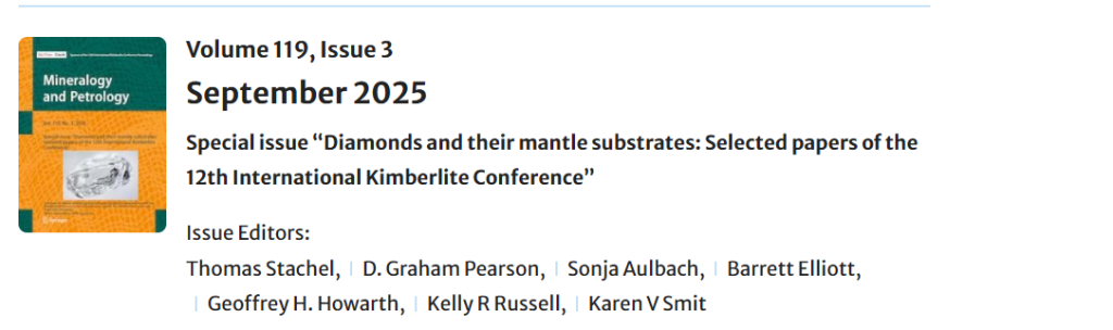 The 12 IKC conference proceedings will be published as two books (issues 3 and 4 of vol 119 of Mineralogy and Petrology): (1.) Diamonds and their mantle substrates and (2.) Cratons, kimberlites and exploration. The 12 IKC Proceedings Volumes are sponsored by Rio Tinto.
